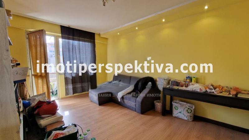 Представяме двустаен апртамент с три отделни помещения в квартал Кючук Париж. Разположен в панелен блок на пети етаж от осем, среден апартамент с южно изложение. Разпределението на имота е следното: Г-образен коридор, хол с излаз на тераса, кухня, спалня с общ излаз от двете стаи към втора тераса и баня с тоалетна. За Ваше удобство в снимки е приложено разпределение на стаите. Към него има прилежаща изба - 3,50 кв.м. Апартамента има следните подобрения - вътрешна изолация на всички стаи, отремонтирана баня, подови настилки, сменени ВиК и ел. инсталация. Този имот предлага прекрасна възможност за преустройство с две спални! Жилището е в непосредствена близост до МБАЛ 'Света Каридад', Слънчеви лъчи, училище 'Константин Величков и детска градина 'Малина'.