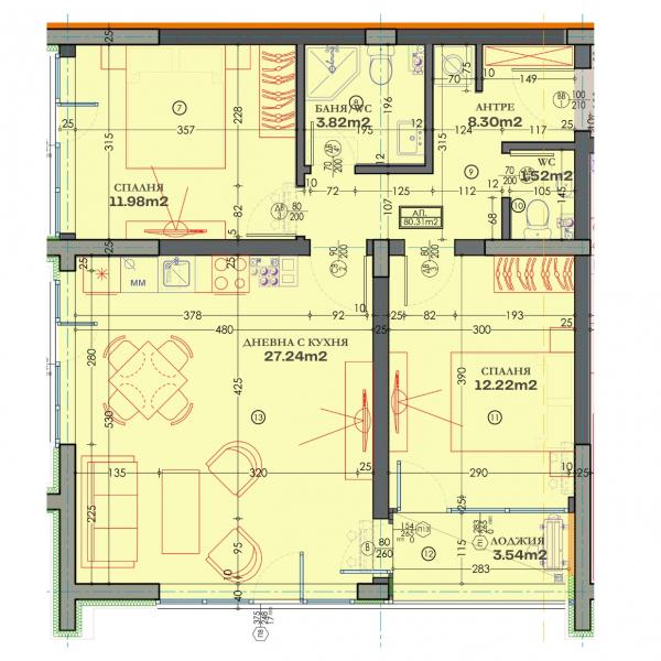 ПРЕД АКТ 16!!! Предлагаме Ви ТРИСТАЕН апартамент на СРЕДЕН ЕТАЖ разположен в новострояща се ЛУКСОЗНА СГРАДА !!! Жилището се състои от просторен и светъл хол с кухненски бокс, ДВЕ спални, тераса, баня с тоалетна ,тоалетна, входно антре и складово помещение. Сградата се строи от утвърден строител с множество готови обекти , като ще бъде завършена съгласно всички европейски стандарти при технологията и качеството на строителство: стилна фасада, луксозни общи части. Постигнати високи нива на енергийна ефективност!!! Сградата е с НИСЪК ПРОЦЕНТ ОБЩИ ЧАСТИ, хидро и топлоизолации, блиндирани входни врати, луксозно завършване на общите части ! Към имота може да бъде закупено ПАРКОМЯСТО на отделна цена!!! АГЕНЦИЯТА СЪДЕЙСТВА С ВСИЧКО НЕОБХОДИМО ДО ПРИКЛЮЧВАНЕ НА СДЕЛКАТА!!!