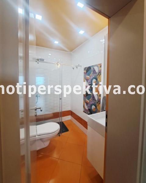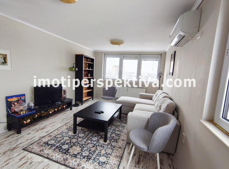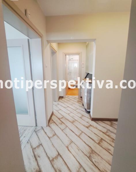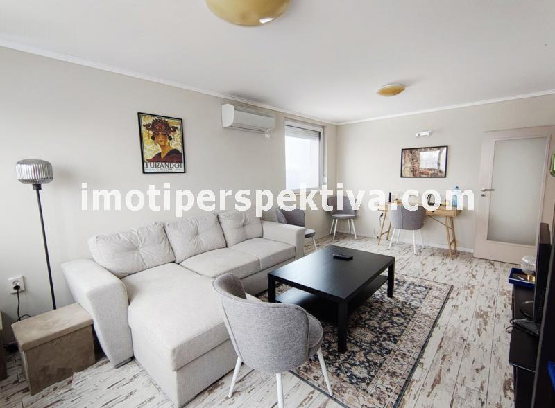 Елегантен двустаен апартамент за продажба, 65 кв.м, ЕПК, находящ се на 7 етаж, централната градска част Пловдив. Апартаментът е саниран - външна и вътрешна изолация; нова дограма, ново Електро и ВиК, нови настилки, нова кухня, мебели и уреди. Банята е луксозна, нова, удобна и практична. Жилището спокойно може да се превърне от двустаен апартамент в тристаен. Към него има 4 кв.м изба. Свободно паркиране и голям паркинг.