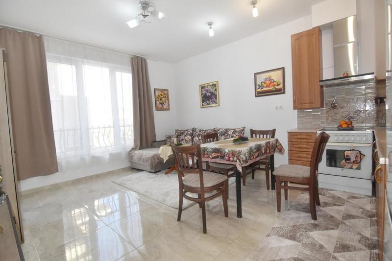 Предлагаме Ви двустаен апартамент на СРЕДЕН етаж в сграда С АКТ 16! Състои се от СВЕТЪЛ и СЛЪНЧЕВ хол с кухненски бокс, САМОСТОЯТЕЛНА спалня, баня с тоалетна, килер, ТЕРАСА и входно антре. Имотът които ви предлагаме да закупите е с подови настилки от ламиниран паркет и теракот, вътрешни МДФ врати, висок клас ел.уреди и др. В близост са разположени детски градини, училища, хранителни магазини, удобен градски транспорт до всяка една точка на града и др. КЪМ ИМОТА ИМА ВЪЗМОЖНОСТ ДА СЕ ЗАКУПИ ПАРТЕРЕН ГАРАЖ С САНИТАРЕН ВЪЗЕЛ И ВОДА (30000€) И ЛИ ПАРКОМЯСТО (15000€)!