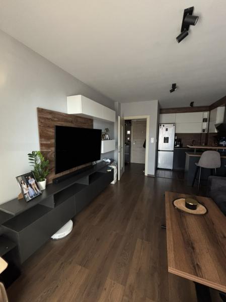 Предлагаме на Вашето внимание двустаен апартамент в нов комплекс. Жилището е с площ от 72 кв.м. и с ЮЖНО ИЗЛОЖЕНИЕ. Апартаментът е с дневна с кухненски кът, спалня, баня с тоалетна и тераса. Към жилището има прилежаща изба. Продава се обзаведено с висок клас мебели и електроуреди.