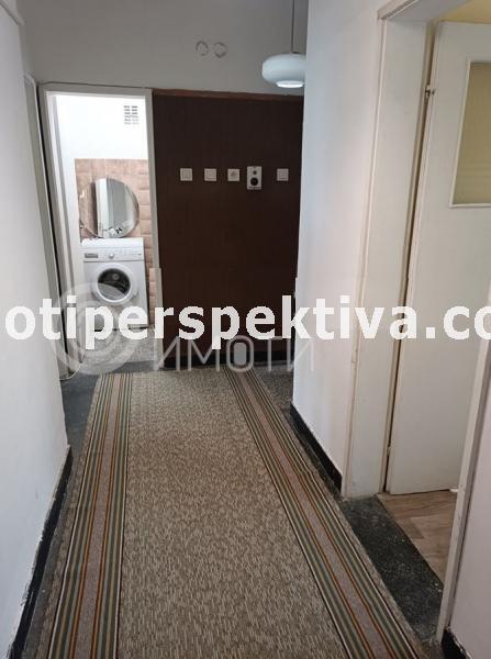 Център, тухлен апартамент с три непреходни стаи - хол, кухня, спалня, баня с тоалетна, перално, антре и две тераси, 68 кв.м. чиста площ без терасите., разположен на 3-ти етаж. Жилището е със сменена дограма. Избено помещение 10 кв.м. Ремонтиран покрив на сградата и асансьор. Изложение: Север - Юг. Отлична локация.