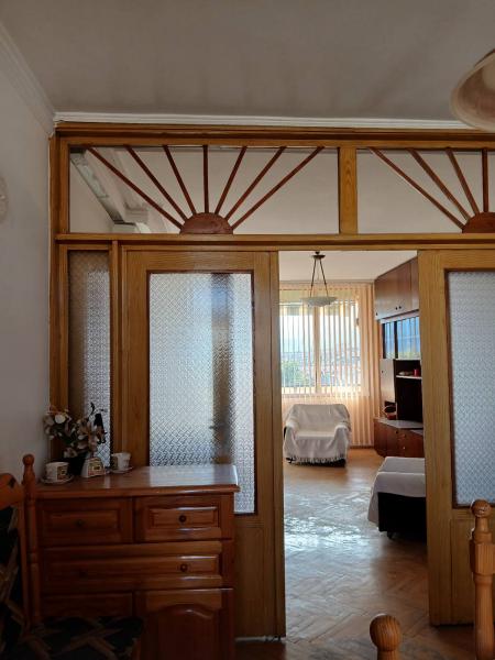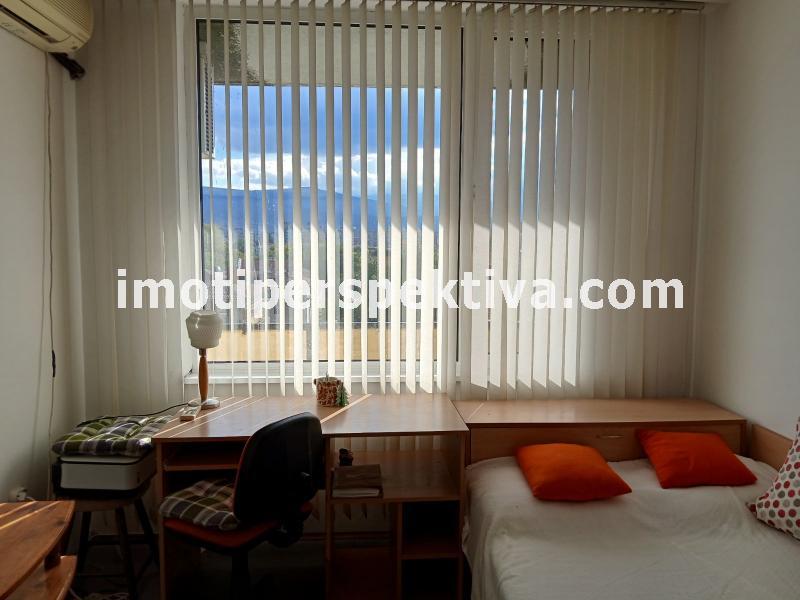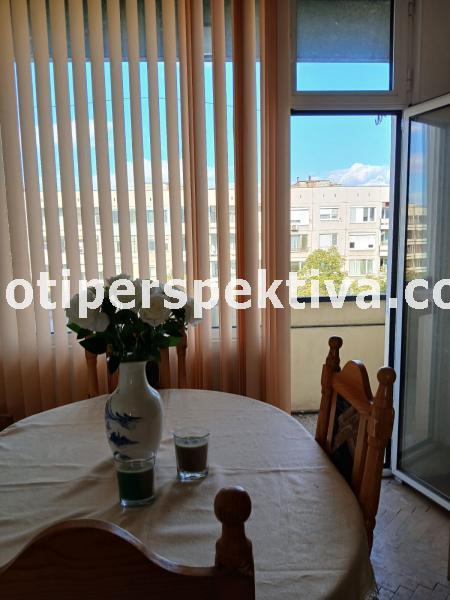 Предлагаме Ви ТРИСТАЕН апартамент на СРЕДЕН етаж на КОМУНИКАТИВНО място за живеене! Състои се от ЮЖЕН и ПРОСТОРЕН хол, ОТДЕЛНА кухня, трапезария, ДВЕ спални, баня ОТДЕЛНА тоалетна, ДВЕ ТЕРАСИ, коридор и прилежащо избено и таванско помещение. Жилището е с великолепна гледка към Родопите! Дограмата на апартамента е сменена изцяло. Чистата площ на жилището, без тераси и общи части, е 98 кв.м., по вътрешен контур.