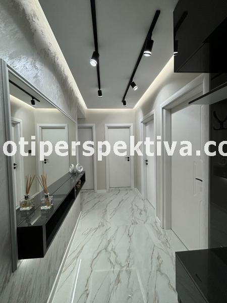 Представяме ви изключителен 3-стаен апартамент ново строителство, луксозно изпълнение, разположен в един от най-предпочитаните райони на Пловдив кв. Тракия. Имотът е с обща площ 103 кв.м и предлага функционално разпределение: просторна дневна с кухня и място за трапезария, две самостоятелни спални, две тераси, една баня с тоалетна и отделна тоалетна. Жилището е ситуирано в модерна сграда с асансьор. Към апартамента има и мазе удобно място за съхранение. Луксозното изпълнение се откроява с висококачествени материали и внимание към детайла, създаващи усещане за комфорт и стил както за ежедневие, така и за инвестиция с отлична доходност. Общите части на сградата са поддържани, а достъпът е контролиран.