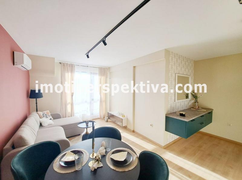 Жилищната площ е разпределена във всекидневна с кухненски тракт, кът ателие, панорамен балкон ориентиран на югозапад към Родопите и Младежки хълм, а спалнята ни отвежда на изток към красива панорамна тераса към емблематичните тепета на Пловдив.