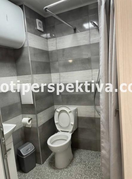 Тристаен апартамент в район Южен, разположен в нова тухлена сграда с АКТ 16. Жилището е с функционално разпределение: просторен и светъл хол с кухненски бокс, две спални, баня с тоалетна, втора тоалетна (обособена като перално помещение), коридор, склад и две тераси.