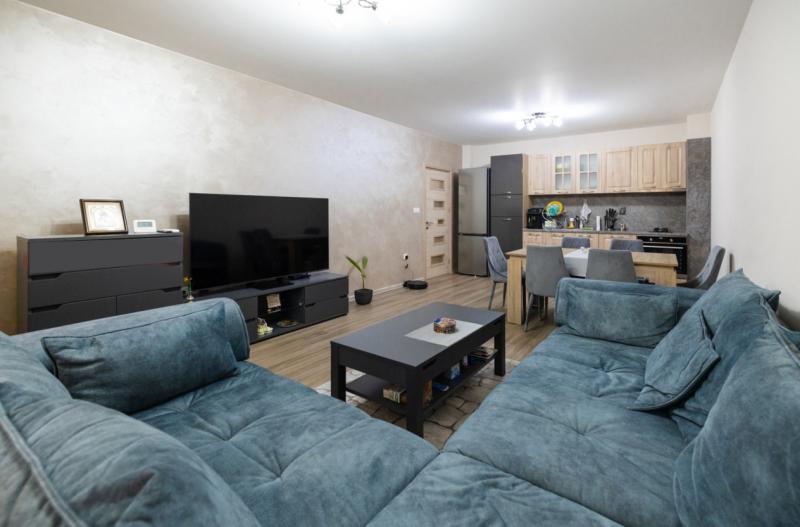 Предлагаме Ви ТРИСТАЕН апартамент с ИЗЦЯЛО ЮЖНО ИЗЛОЖЕНИЕ в сграда с АКТ 16! Състои се от СВЕТЪЛ и СЛЪНЧЕВ хол с кухненски бокс, трапезария, ДВЕ САМОСТОЯТЕЛНИ спални, баня с тоалетна, перално помещение, ТЕРАСА и коридор. Имотът които ви предлагаме да закупите е с подови настилки от ламиниран паркет и теракот, вътрешни МДФ врати, висок клас ел.уреди и др. В близост са разположени детски градини, училища, хранителни магазини, удобен градски транспорт до всяка една точка на града и др. КЪМ ИМОТА МОЖЕ ДА ЗАКУПИТЕ ПОДЗЕМНО ПАРКОМЯСТО (18000€) !