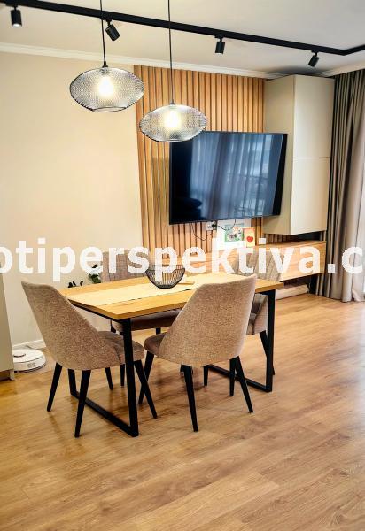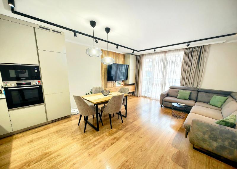 Апартамента е обзаведен с висок клас мебели и кухненски електроуреди, климатици Daikin във всяка стая,пералня и миална машина Miele.