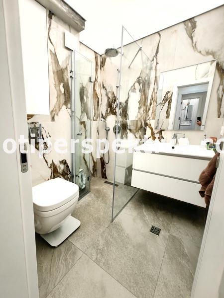 Входно антре,кухня с дневна, детска стая, спалня със собствена баня с тоалетна, втора баня с тоалетна,перално помещение и две тераси.
