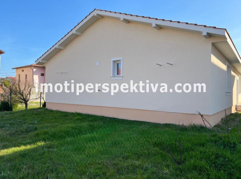 Предлагаме ви САМОСТОЯТЕЛНА едноетажна къща пред АКТ 16!!! Къщата разполага с три самостоятелни спални, всяка със самостоятелен санитарен възел ( баня с тоалетна ), просторен и светъл хол с кухненски бокс, голям коридор с тоалетна към него ( за гости ), перално помещение / килер. Имота има таванско помещение 200кв.м. Предния двор е 100кв.м. с паркоместа за 4 автомобила, а задния е 170кв.м. Осветлението е с девиаторно управление, а ВИК е направено с колектори.
