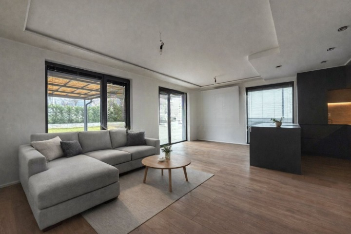 Имотът е завършен с висок клас материали и електроуреди, разполага с външни автоматични щори, система за пречистване на водата, СОТ, оптичен интернет и контролиран достъп. Отоплението е подово с термопомпа, осигуряващо енергийна ефективност и целогодишен комфорт.