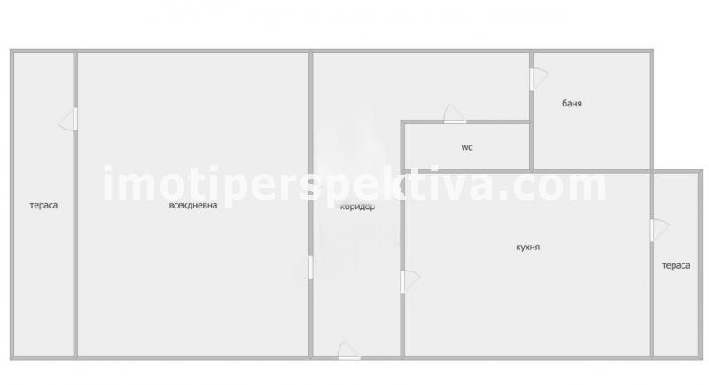 - РАЗПРЕДЕЛЕНИЕ: Просторна всекидневна с излаз на голяма южна тераса, кухня с излаз на тераса, Г-образен коридор, баня и отделно тоалетна*.