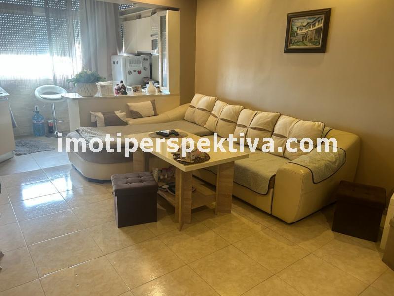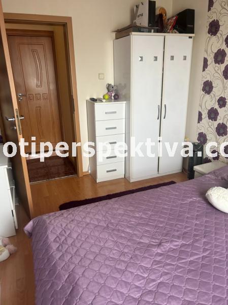 Чудесно тристайно жилище с преустройство, находящо се в ЖК Тракия, до Общината. Разпределението е 2 спални, хол с бокс, баня с тоалетна и голям коридор. Продава се напълно обзаведен, саниран,в идеален вид и готов веднага за живеене. На последен етаж е, с панорамна гледка, като отпреди месец покривът на блока е изцяло ремонтиран.