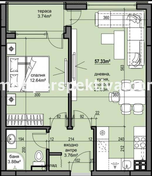 Предлагаме Ви двустаен апартамент на СРЕДЕН етаж в сграда с АКТ 16! Състои се от СВЕТЪЛ и СЛЪНЧЕВ хол с кухненски бокс, САМОСТОЯТЕЛНА спалня, баня с тоалетна, ТЕРАСА и входно антре. Имотът които ви предлагаме да закупите е на шпакловка и замазка което дава страхотната възможност на новите собственици да го обзаведат по собствен вкус и стил. В близост са разположени детски градини, училища, хранителни магазини, удобен градски транспорт до всяка една точка на града и др.