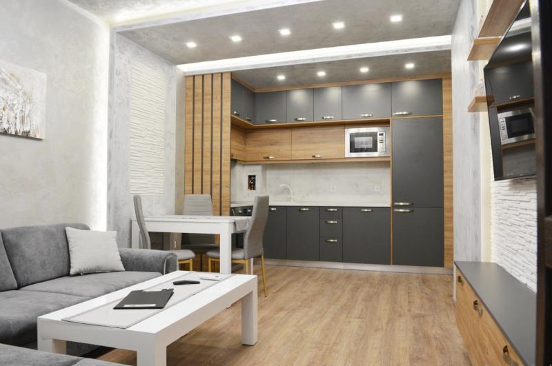 Двустаен апартамент на втори жилищен етаж в нова сграда с асансьор. Жилището се състои от всекидневна с кухненски кът, спалня, тераса, коридор, баня и мазе. Продава се с цялото налично обзавеждане и електроуреди - 2 бр климатици, висок клас, вградени: хладилник, пералня, съдомиялна, фурна, котлони, микровълнова, абсорбатор, Смарт ТВ. Има собствено ПАРКОМЯСТО което по желание може да се закупи !!!