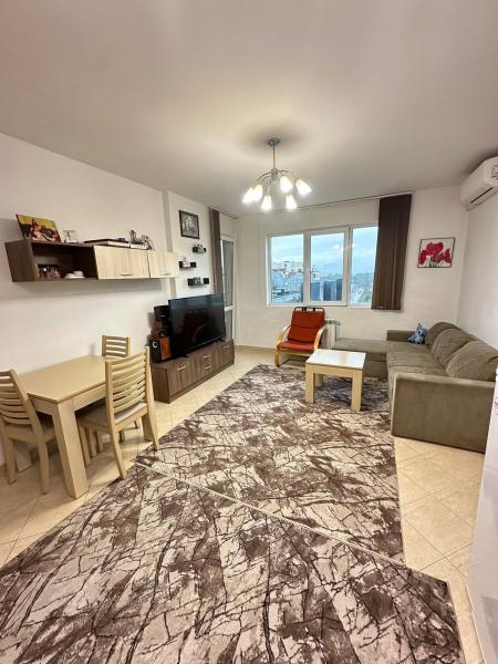 Продава се обзаведен двустаен апартамент, готов за нанасяне, разположен на 8-ми етаж от 10 в тухлена сграда с АКТ 16. Имотът се намира на топ локация зад Мол Плаза, в близост до ключови булеварди, спирки на градски транспорт, училища и магазини.