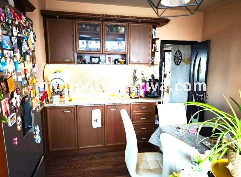Предлагаме Ви ТРИСТАЕН апартамент С РЕАЛНА квадратура на ТИХО и СПОКОЙНО място за живеене. Състои се от СВЕТЪЛ и СЛЪНЧЕВ хол, ОТДЕЛНА кухня, ДВЕ спални, баня с тоалетна, килер, коридор и прилежащо избено помещение. Имотът които ви предлагаме да закупите е с подови настилки от ламиниран паркет и теракот, вътрешни МДФ врати, сменена ПВЦ дограма, ВиК, ел.инталация и др. В близост са разположени детски градини, училища, хранителни магазини, удобен градски транспорт до всяка една точка на града и др.