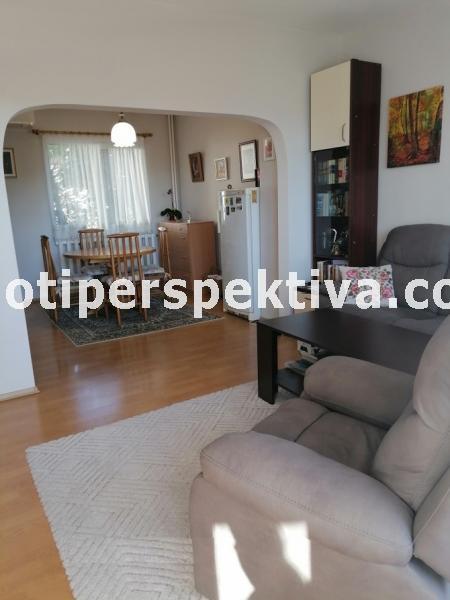 Продаваме в ж.к. Тракия, 92кв.м, ет.3, изложение юг-север, до Кауфланд. Апартамента е след ремонт, състои се от две спални, хол, трапезария, кухненски бокс, баня, тоалетна, перално помещение и две тераси. Към жилището има и избено помещение от 4,14кв.м. Апартамента е готов за нанасяне, сменена дограма, нова кухня, нови интериорни врати ,нов фаянс и теракот в санитарните помещения. Блока е на отлично място, зелени площи и свободно паркиране пред входа.