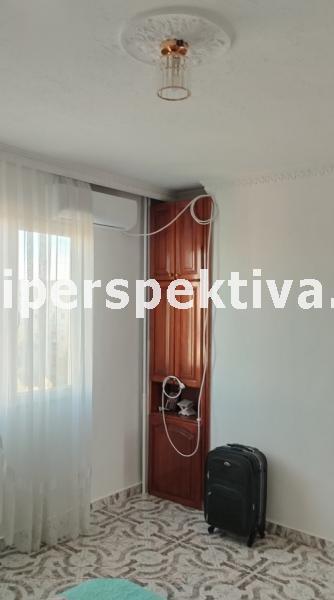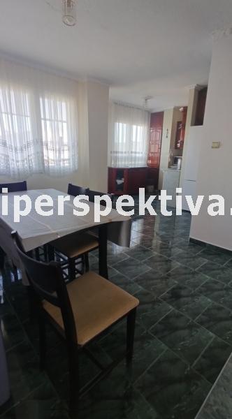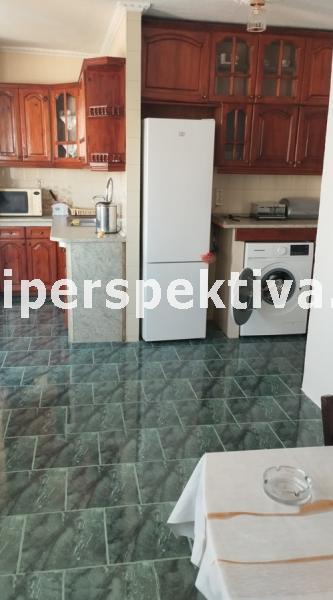Изключително просторен и светъл апартамент с изложение север/юг. Разпределение: две спални (между тях баня с тоалетна); голям хол с трапезария и кухня (отворено простанство на буква 'г'); втора баня с тоалетна; коридор; две тераси, като към едната има излаз от кухнята, а към по-голямата излазът е от спалня и хол. Има прилежащи таван и мазе. Жилището е с частични подобрения, наскоро освежено и в отлично състояние. Има паркинг пред блока, чудесни площадки за игри и спорт, детска градина, училище, магазини и спирки.