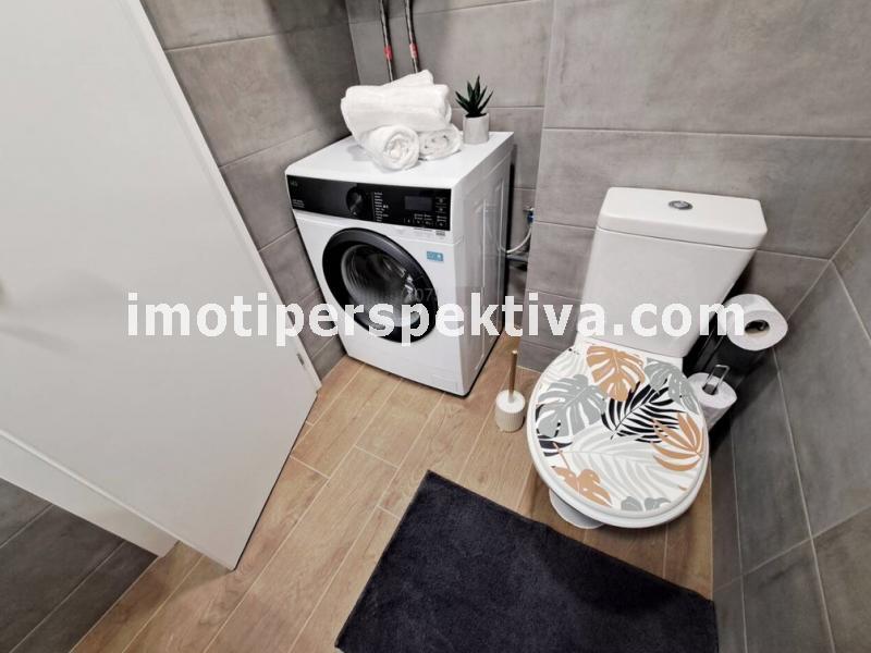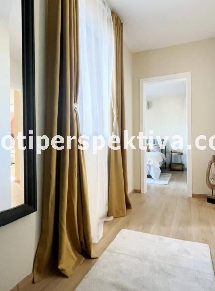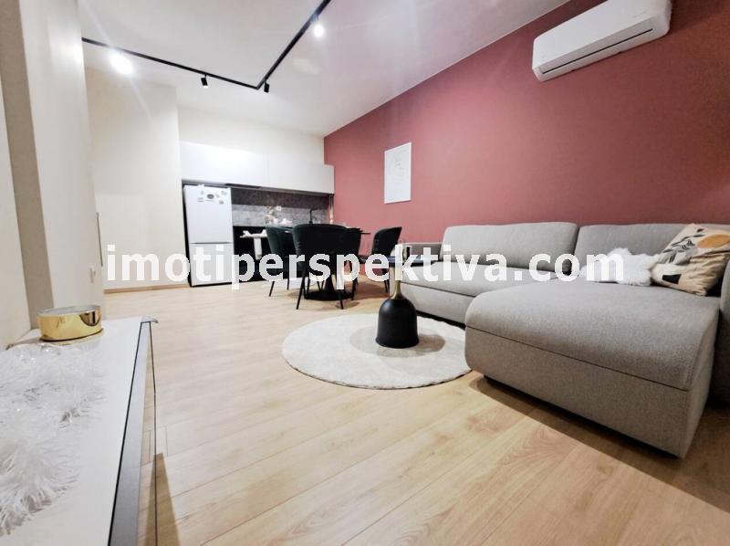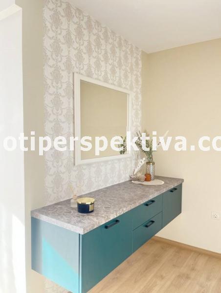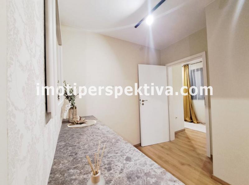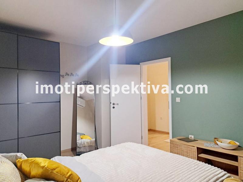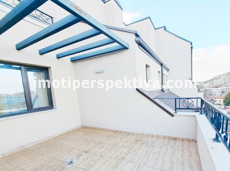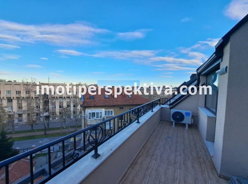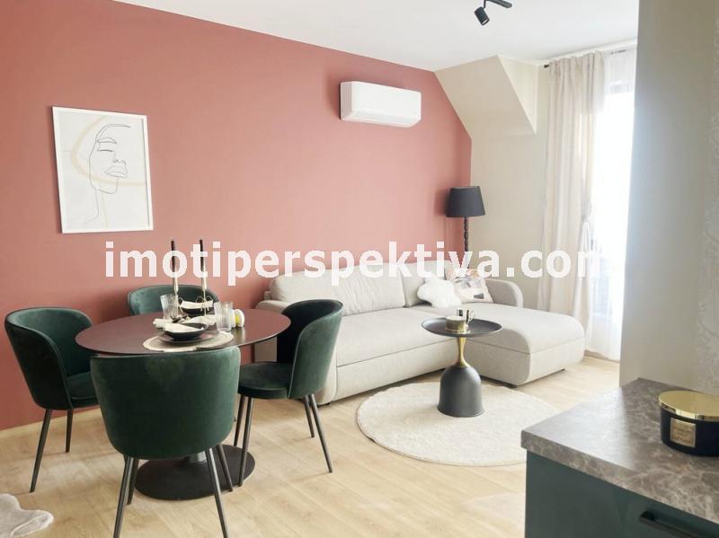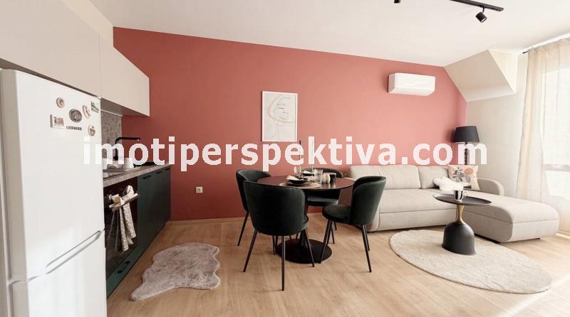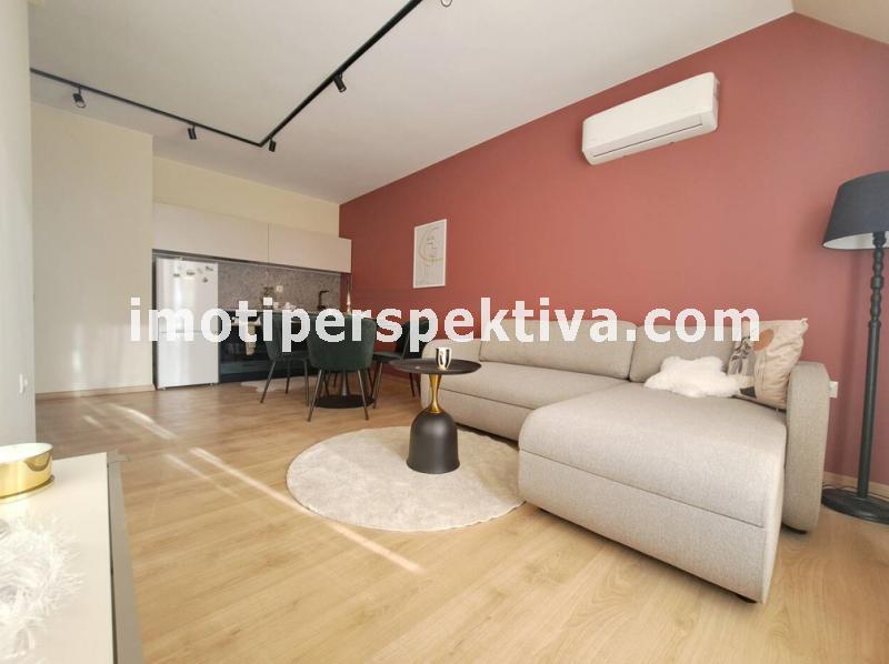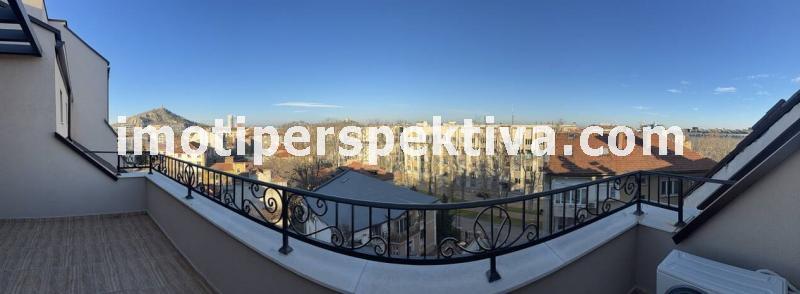 Жилищната площ е разпределена във всекидневна с кухненски тракт, кът ателие, панорамен балкон ориентиран на югозапад към Родопите и Младежки хълм, а спалнята ни отвежда на изток към красива панорамна тераса към емблематичните тепета на Пловдив.