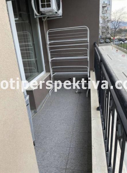 Тристаен апартамент в район Южен, разположен в нова тухлена сграда с АКТ 16. Жилището е с функционално разпределение: просторен и светъл хол с кухненски бокс, две спални, баня с тоалетна, втора тоалетна (обособена като перално помещение), коридор, склад и две тераси.