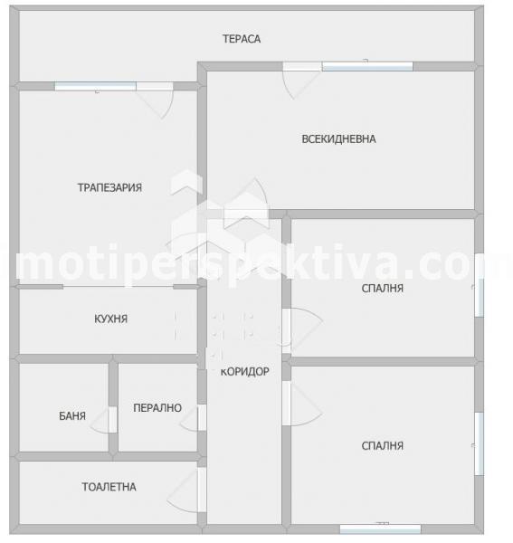 - ЕТАЖНОСТ: Жилището се състои от всекидневна, отделна кухня с голяма трапезария, две спални, баня, тоалетна, перално помещение и тераса.