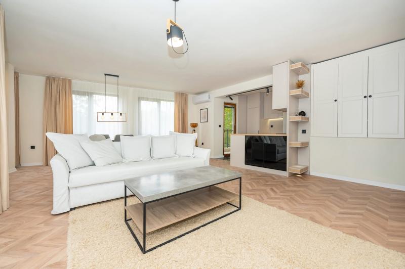 Обширна дневна с площ от 40 кв.м, с обособени кътове за кухня, трапезария, отдих и работен кът;