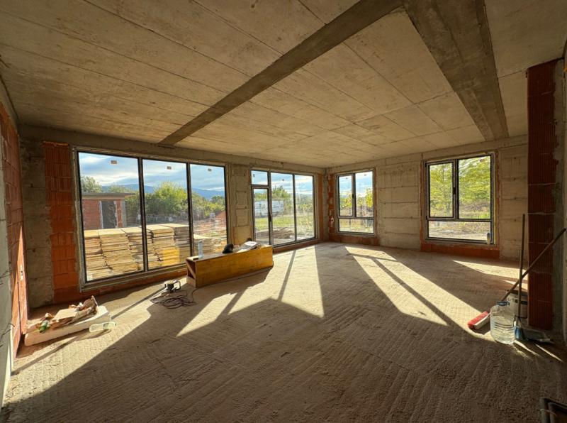 290КВ ДВОР!!! Предлагаме Ви ДВУЕТАЖНА къща на ТИХО и СПОКОЙНО място с АКТ 14! Първият етаж се състои от ОГРОМЕН и СВЕТЪЛ хол с кухненски бокс и трапезария (50кв) с излаз на веранда (27кв), спалня за гости със собствен санитарен възел, килер и самостоятелна тоалетна. На втория етаж са разположени ТРИ САМОСТОЯТЕЛНИ спални, две от които със собствен санитарен възел и едната от тях с гардеробна, втора баня с тоалетна, перално помещение и ТЕРАСА (13КВ). Това е цена на къщата на АКТ 16 на шпакловка и замазка! Към имота получавате 30кв гараж!! Възможност за покупка на едната или и на двете къщи.