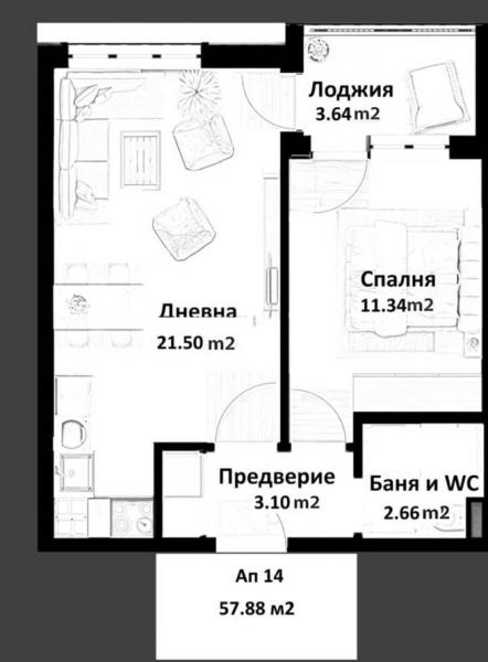 Предлагаме Ви двустаен апартамент на СРЕДЕН етаж в сграда с АКТ 14! Състои се от СВЕТЪЛ и ПРОСТОРЕН хол с кухненски бокс, САМОСТОЯТЕЛНА спалня, баня с тоалетна, ТЕРАСА и входно антре. Имотът които ви предлагаме да закупите ще бъде на шпакловка и замазка което дава страхотната възможност на новите собственици да го обзаведат по собствен вкус и стил. В близост са разположени детски градини, училища, хранителни магазини, удобен градски транспорт до всяка една точка на града и др.
