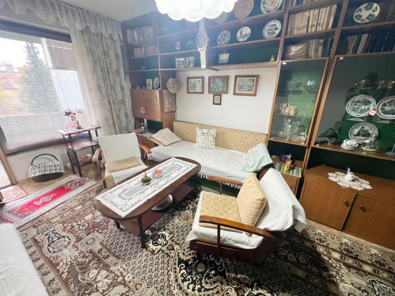 Предлагаме на Вашето внимание двустаен апартамент в Кичюк Париж. Имотът разполага с три отделни помещения и две тераси, което го прави подходящ и за преустройство в тристаен. Апартаментът е със следното разпределение: Г-образен коридор, светла и просторна всекидневна, с излаз на тераса, спалня, кухня, с излаз на тераса, която е усвоена и баня с тоалетна. Локацията е страхотна, в близост до две училища, детска градина, ресторанти, супермаркети и парк Белите Брези . Изложението е изток-запад. Имотът разполага с избено помещение и добре поддържан вход. Паркирането е свободно около сградата.